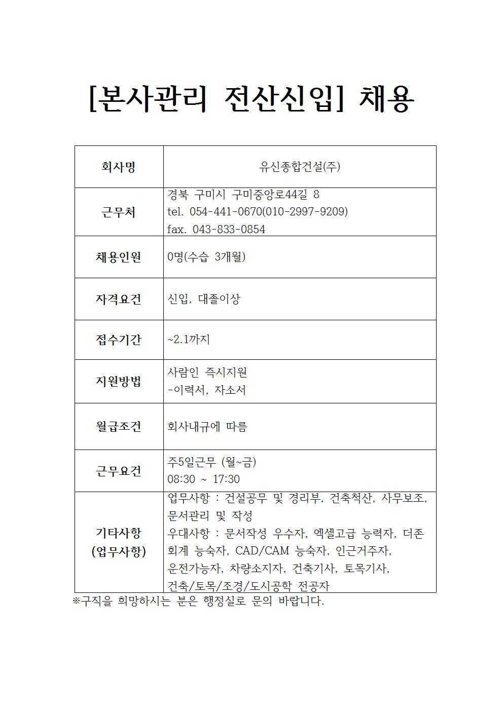 유신종합건설(주) 채용정보