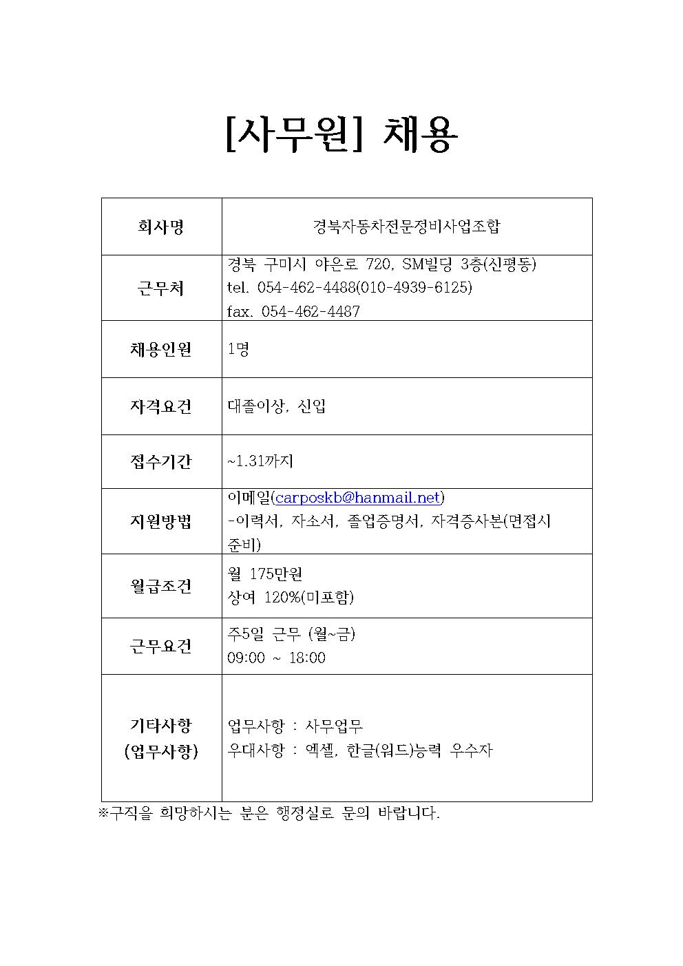 경북자동차전문정비사업조합 채용정보
