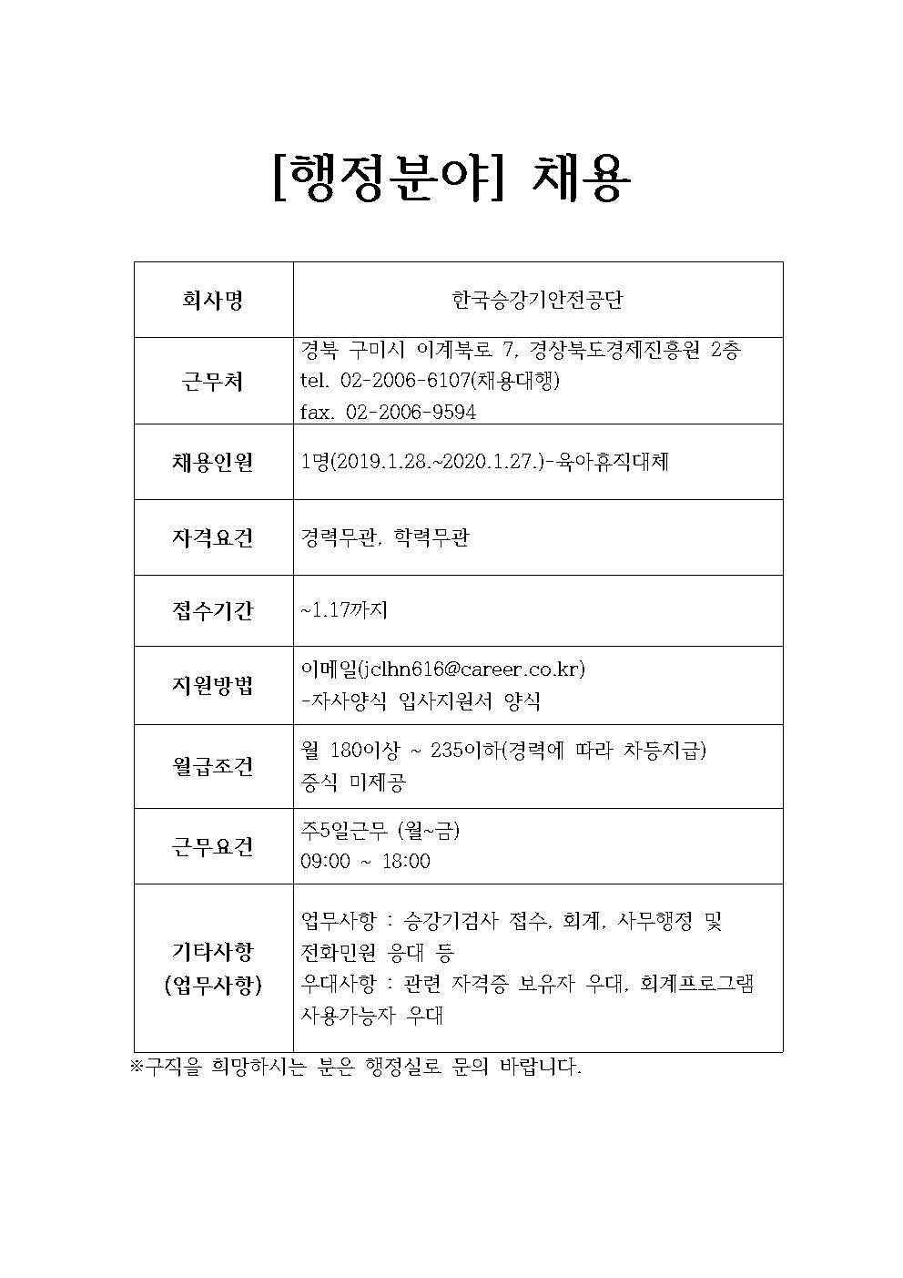 한국승강기안전공단 채용정보