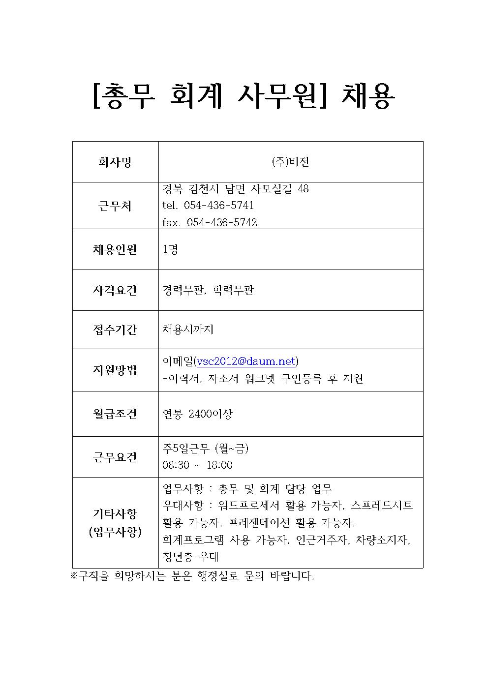 (주)비전 채용정보