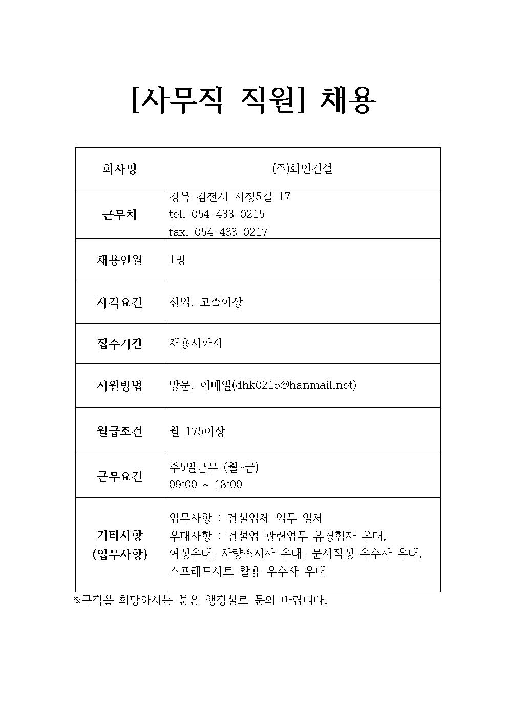 (주)화인건설 채용정보