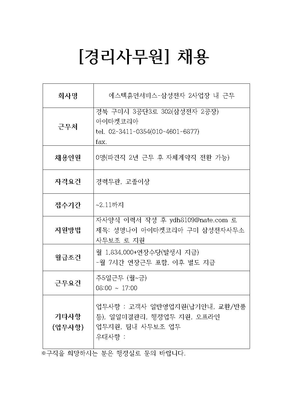 에스텍휴먼서비스-삼성전자2사업장 파견 채용정보