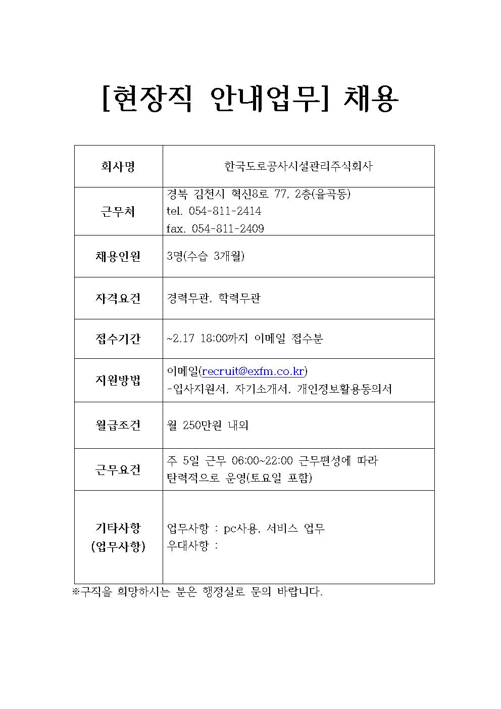 한국도로공사시설관리주식회사 채용정보