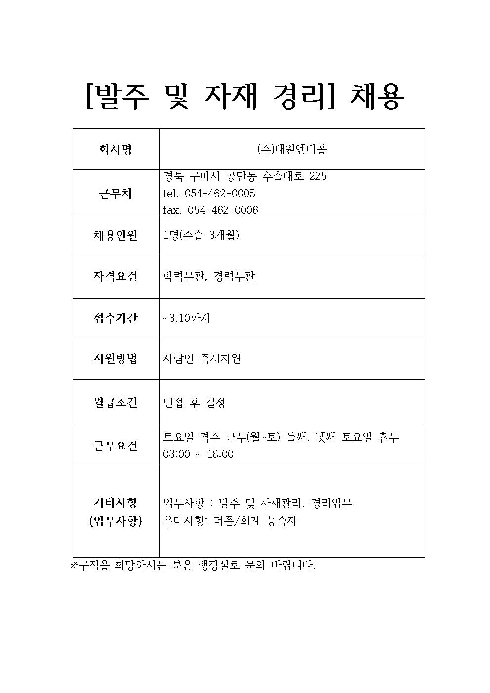 (주)대원엔비폴 채용정보