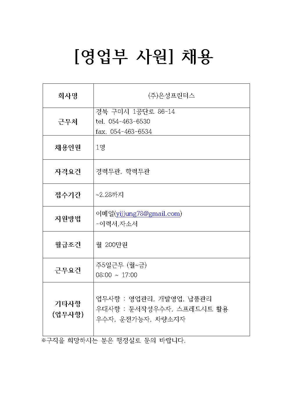 (주)은성프린터스 채용정보