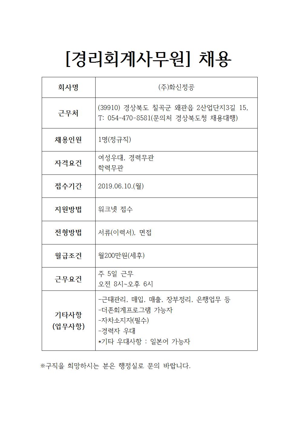 (주)화신정공 채용공고