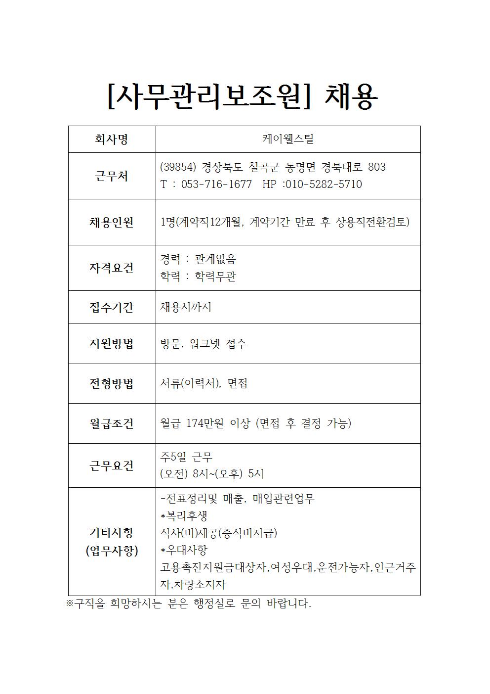 케이웰스틸 채용공고