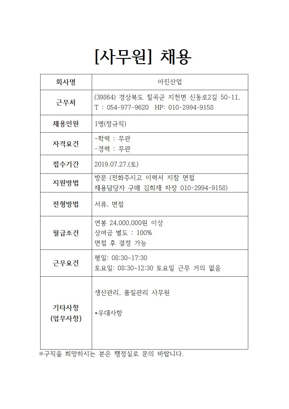 아진산업 채용공고