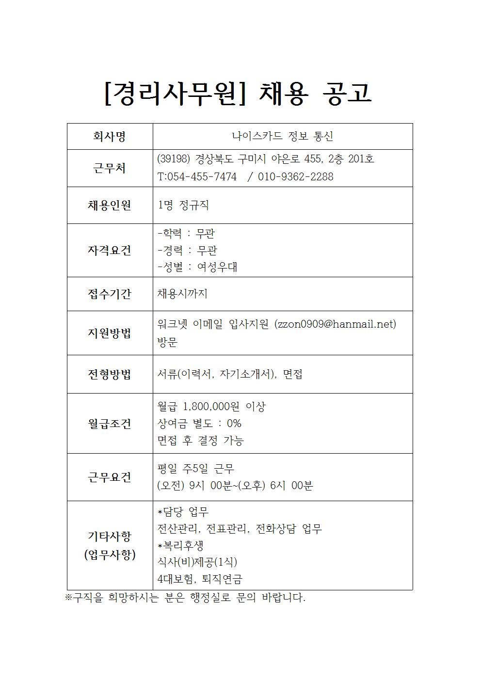 나이스카드 정보 통신 채용공고