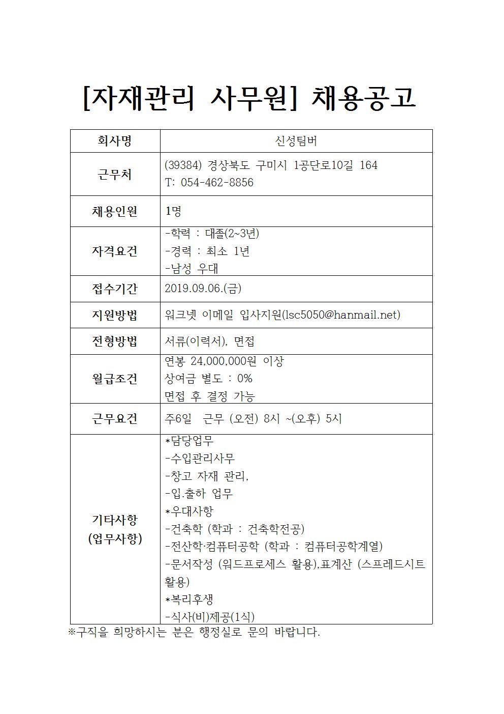 신성팀버 채용공고