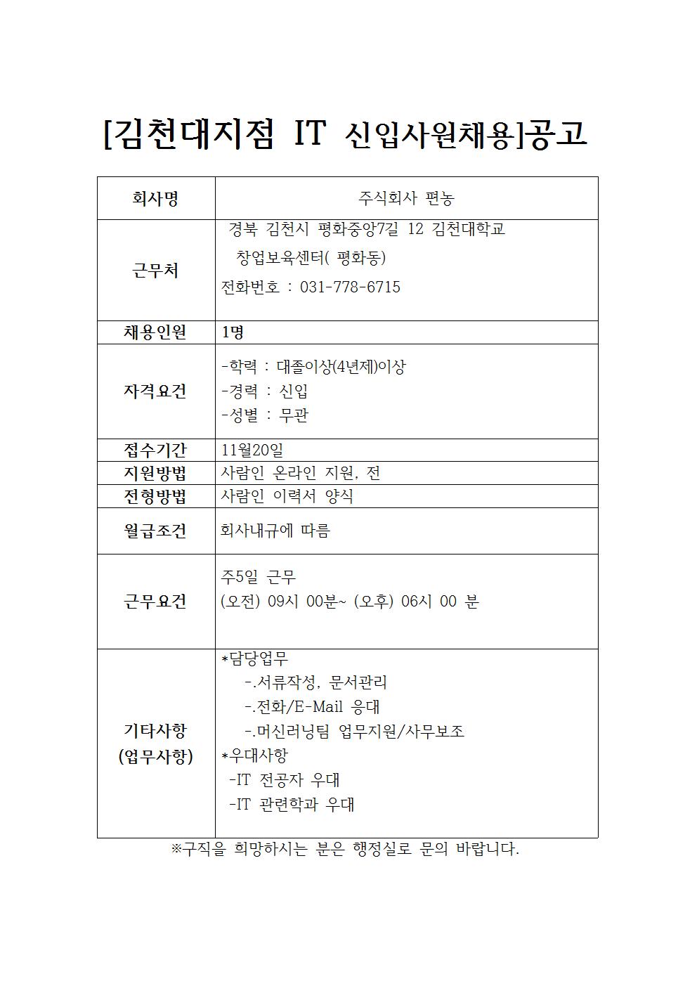 주식회사 편농 채용공고