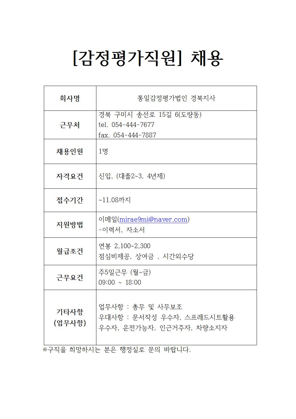 통일감정평가법인 채용공고
