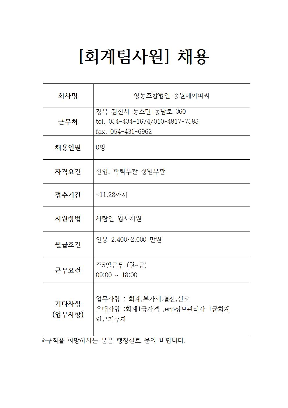영농조합법인 송원에이피씨 채용공고