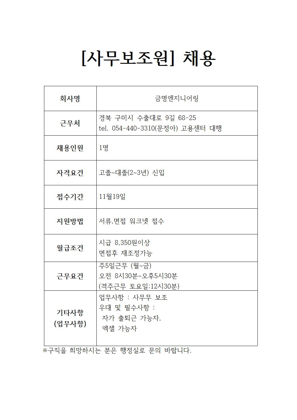 금명엔지니어링 채용공고