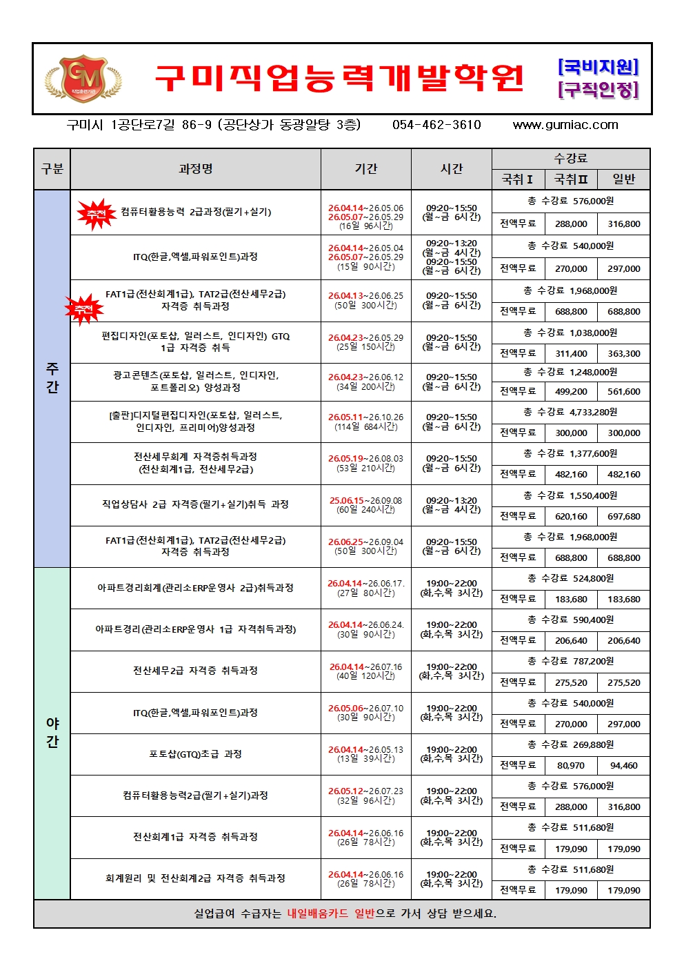 개강 예정 일정표(26.03.30)